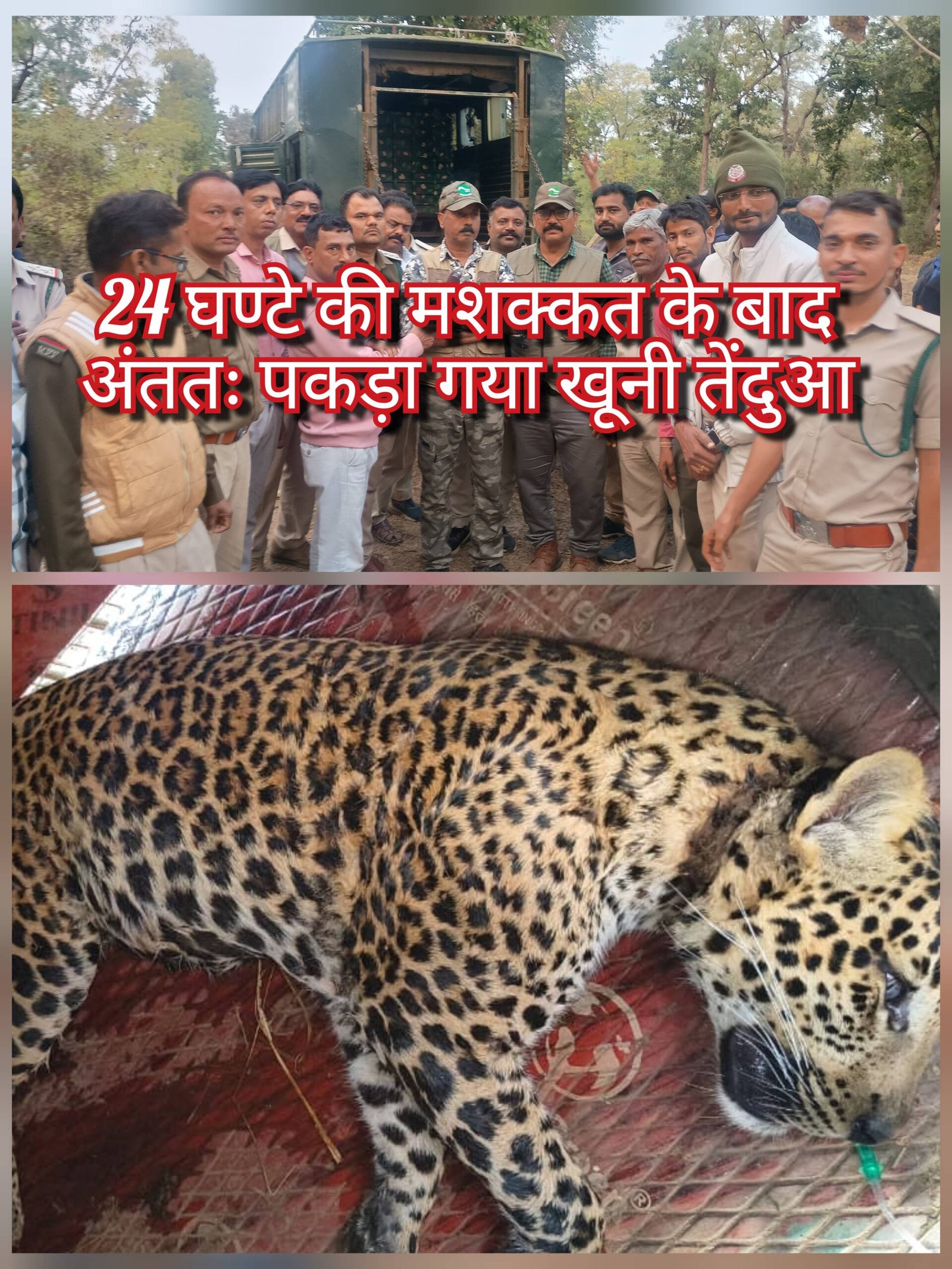 24 घण्टे की मशक्कत के बाद अंततः पकड़ा गया खूनी तेंदुआ