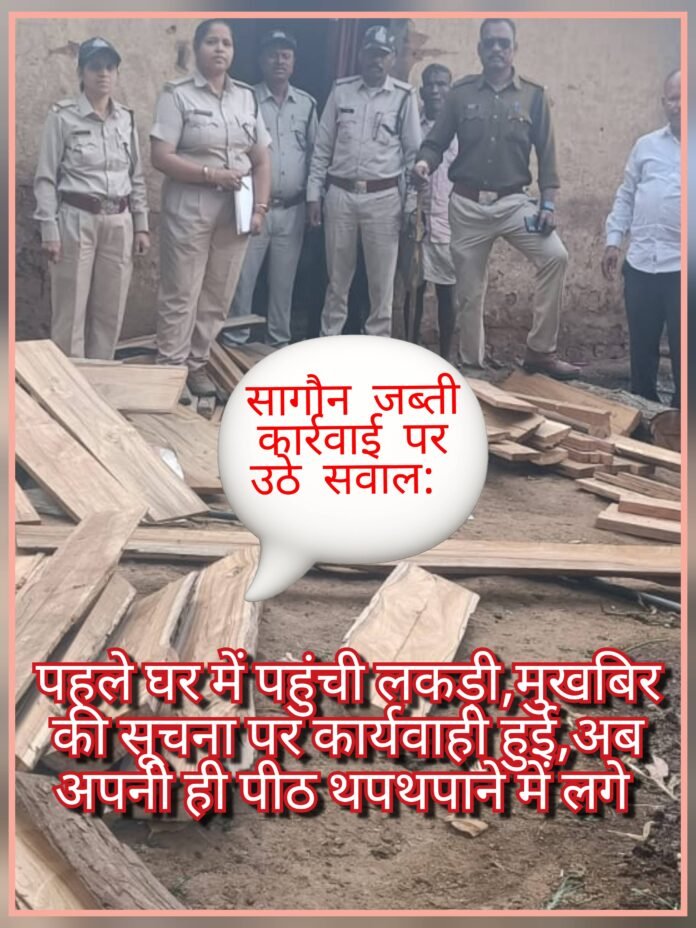 सागौन जब्ती कार्रवाई पर उठे सवाल:पहले घर में पहुंची लकड़ी,मुखबिर की सूचना पर कार्यवाही हुई,अब अपनी ही पीठ थपथपाने में लगे