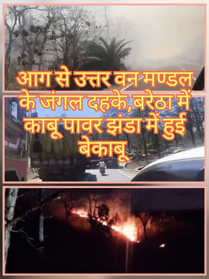 आग से उत्तर वन मण्डल के जंगल दहके,बरेठा में काबू पावर झंडा में हुई बेकाबू